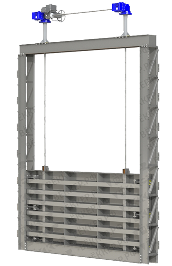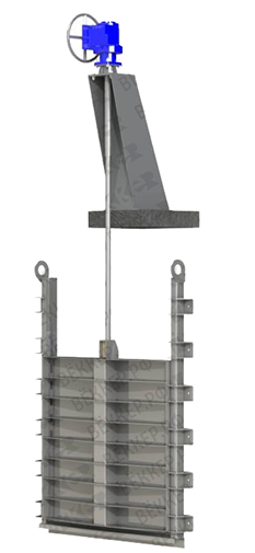 Данный тип затвора предназначен для перекрытия потока жидкости в крупном открытом канале.