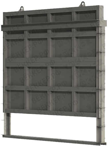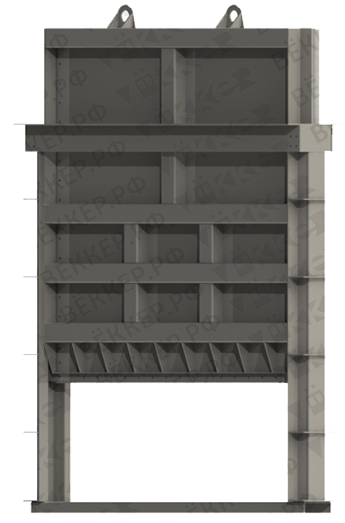 Особенностью конструкции является то, что перемещение щита по раме осуществляется с помощью сторонних грузоподъемных механизмов.